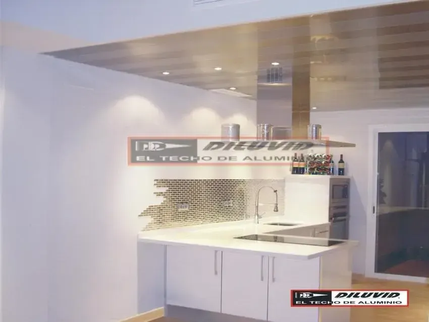 - Instalación de techos de aluminio modernos en cocinas, resistentes a la humedad y fáciles de limpiar.